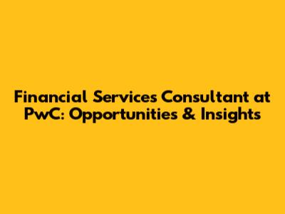 Financial Services Consultant At PwC: Opportunities & Insights