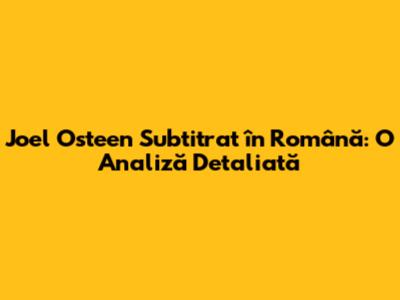 Joel Osteen Subtitrat În Română: O Analiză Detaliată