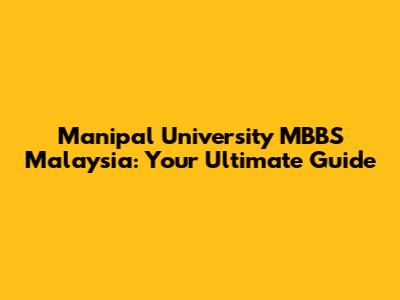 Manipal University Malaysia: MBBS Program Guide