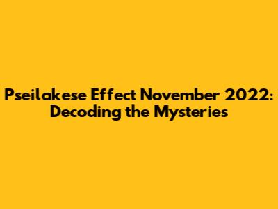 Pseilakese Effect November 2022: Decoding The Mysteries