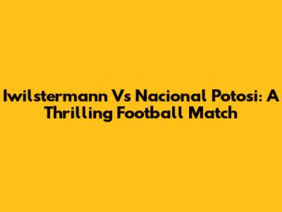 Iwilstermann Vs Nacional Potosi: A Thrilling Football Match