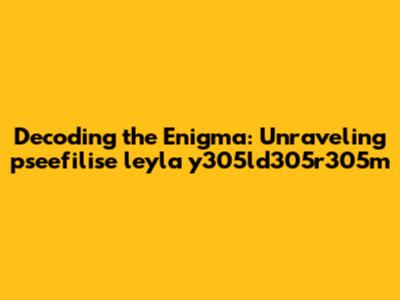 Unraveling The Mysteries Of 'pseefilise Leyla Y305ld305r305m'