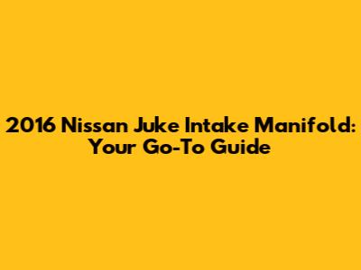Understanding the 2016 Nissan Juke Intake Manifold: The Engine's Air Highway