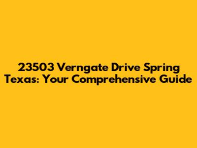 Welcome, guys, to your ultimate guide to 23503 Verngate Drive, nestled in the heart of Spring, Texas! Whether you're considering moving here, already a resident, or just curious about this charming locale, this article will provide you with a detailed overview of what makes 23503 Verngate Drive and its surrounding community so special. We'll dive deep into the neighborhood's amenities, local schools, nearby attractions, and the overall lifestyle you can expect. So, buckle up and get ready for an insightful journey into everything 23503 Verngate Drive has to offer!