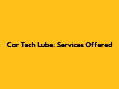 Car Tech Lube: Services Offered