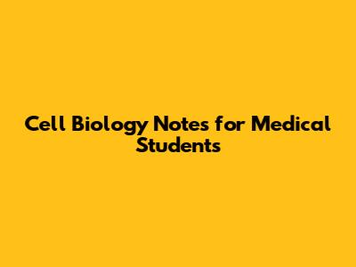 Cell Biology Notes For Medical Students