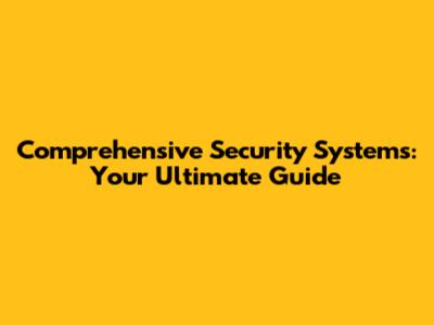 Comprehensive Security Systems: Your Ultimate Guide