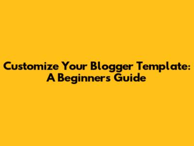 Customize Your Blogger Template: A Beginner's Guide