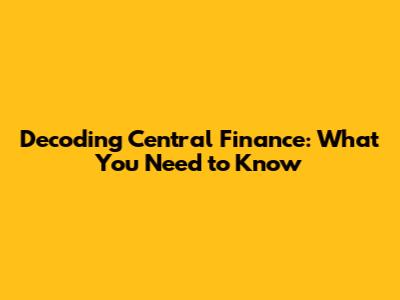 Decoding Central Finance: What You Need To Know