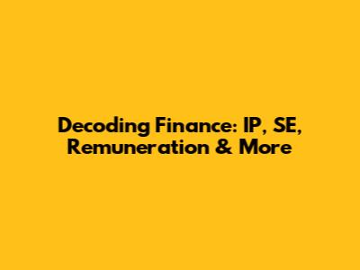 Decoding Finance: IP, SE, Remuneration & More