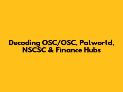 Decoding OSC/OSC, Palworld, NSCSC & Finance Hubs