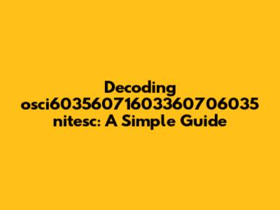 At first glance, "osci60356071603360706035 nitesc" appears to be a combination of alphanumeric characters. The string "osci" might suggest an acronym or abbreviation, possibly related to a specific technology, organization, or product line. The numbers interspersed within the string could represent version numbers, identifiers, or other specific data points. The term "nitesc" could be another identifier, a company name, or a specific project code. To truly understand this, we need to consider various possibilities and contexts where such a string might appear.