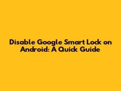 Disable Google Smart Lock: A Quick Android Guide