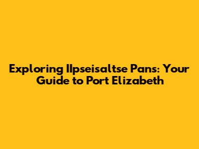 Exploring IIpseisaltse Pans: Your Guide To Port Elizabeth