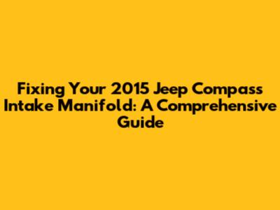 Fixing Your 2015 Jeep Compass Intake Manifold: A Guide