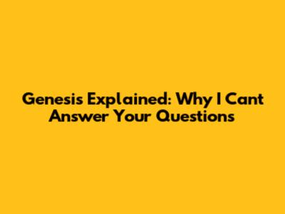 Genesis Explained: Why I Can't Answer Your Questions