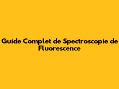 Guide Complet De Spectroscopie De Fluorescence