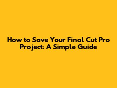 How To Save Your Final Cut Pro Project: A Simple Guide