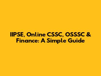 IIPSE, Online CSSC, OSSSC & Finance: A Simple Guide