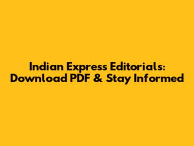 Indian Express Editorials: Download PDF & Stay Informed