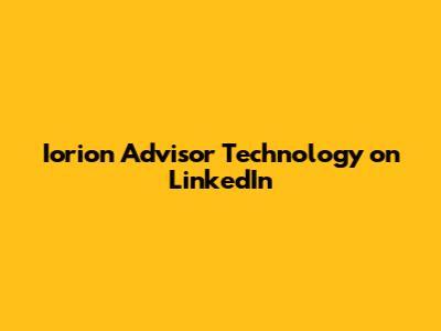 Iorion Advisor Technology On LinkedIn