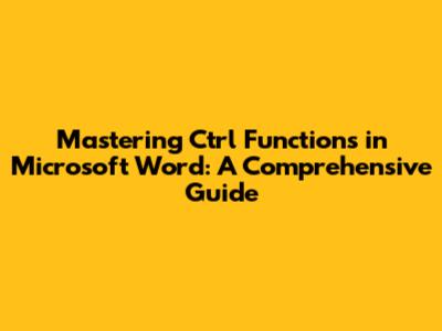 Mastering Ctrl Functions In Microsoft Word: A Comprehensive Guide