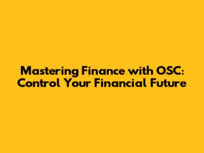 Mastering Finance With OSC: Control Your Financial Future