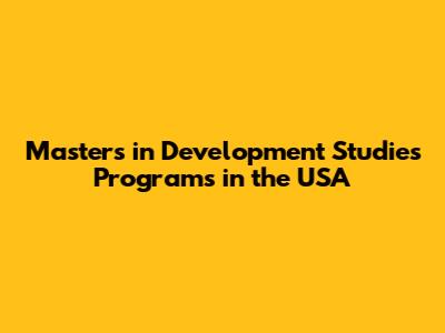 Master's In Development Studies Programs In The USA