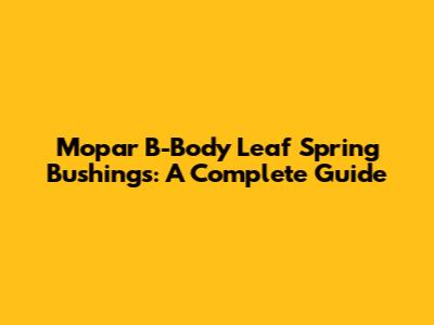 Mopar B-Body Leaf Spring Bushings: A Complete Guide