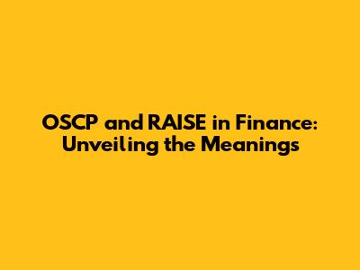 OSCP And RAISE: Decoding Financial Jargon