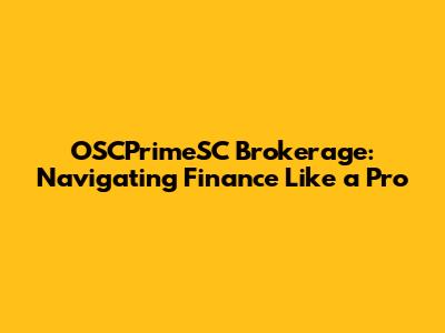 OSCPrimeSC Brokerage: Navigating Finance Like A Pro