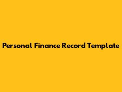 Personal Finance Record Template: Your Key To Financial Control