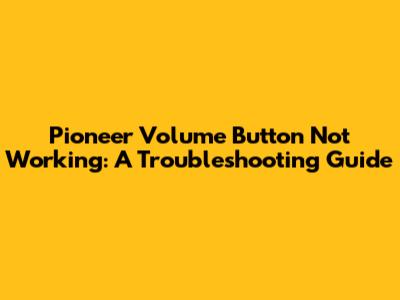 Pioneer Volume Button Troubleshooting: A Simple Guide