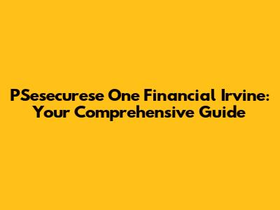PSesecurese One Financial Irvine: Your Comprehensive Guide