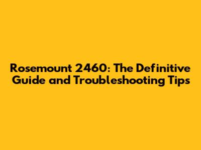 Rosemount 2460: The Definitive Guide And Troubleshooting Tips