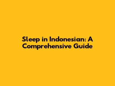 Sleep In Indonesian: A Comprehensive Guide