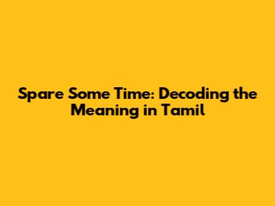 Spare Some Time: Meaning In Tamil And How To Use It