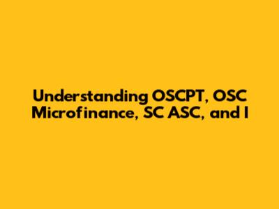 Understanding OSCPT, OSC Microfinance, SC ASC, And I