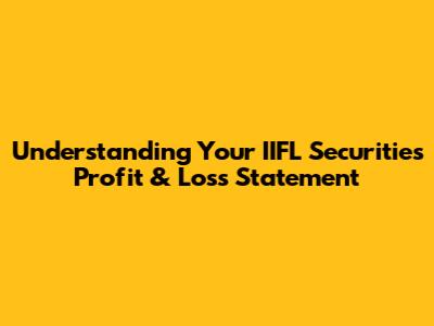 Understanding Your IIFL Securities P&L Statement