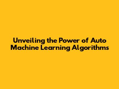 Unlocking Insights: Auto Machine Learning Algorithms Explained