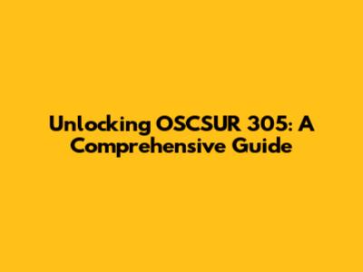 Unlocking OSCSUR 305: A Comprehensive Guide
