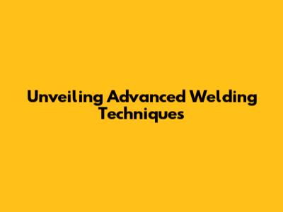 Unveiling Advanced Welding Techniques