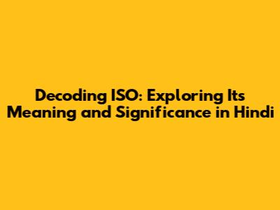 Unveiling ISO: Decoding Its Meaning And Importance In Hindi