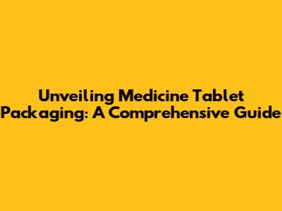 Unveiling Medicine Tablet Packaging: A Comprehensive Guide