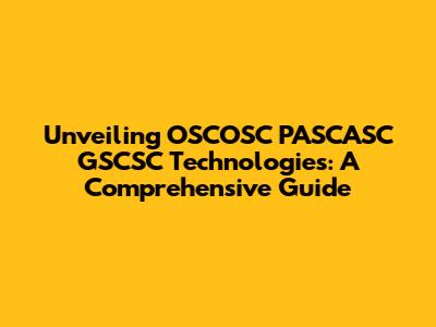 Unveiling OSCOSC PASCASC GSCSC Technologies