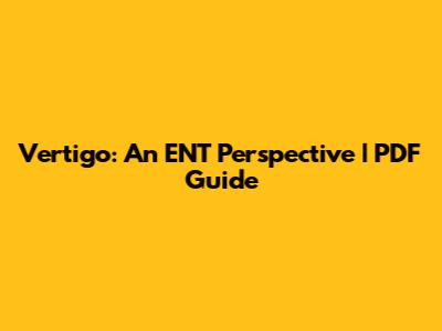 Vertigo: An ENT Perspective | PDF Guide
